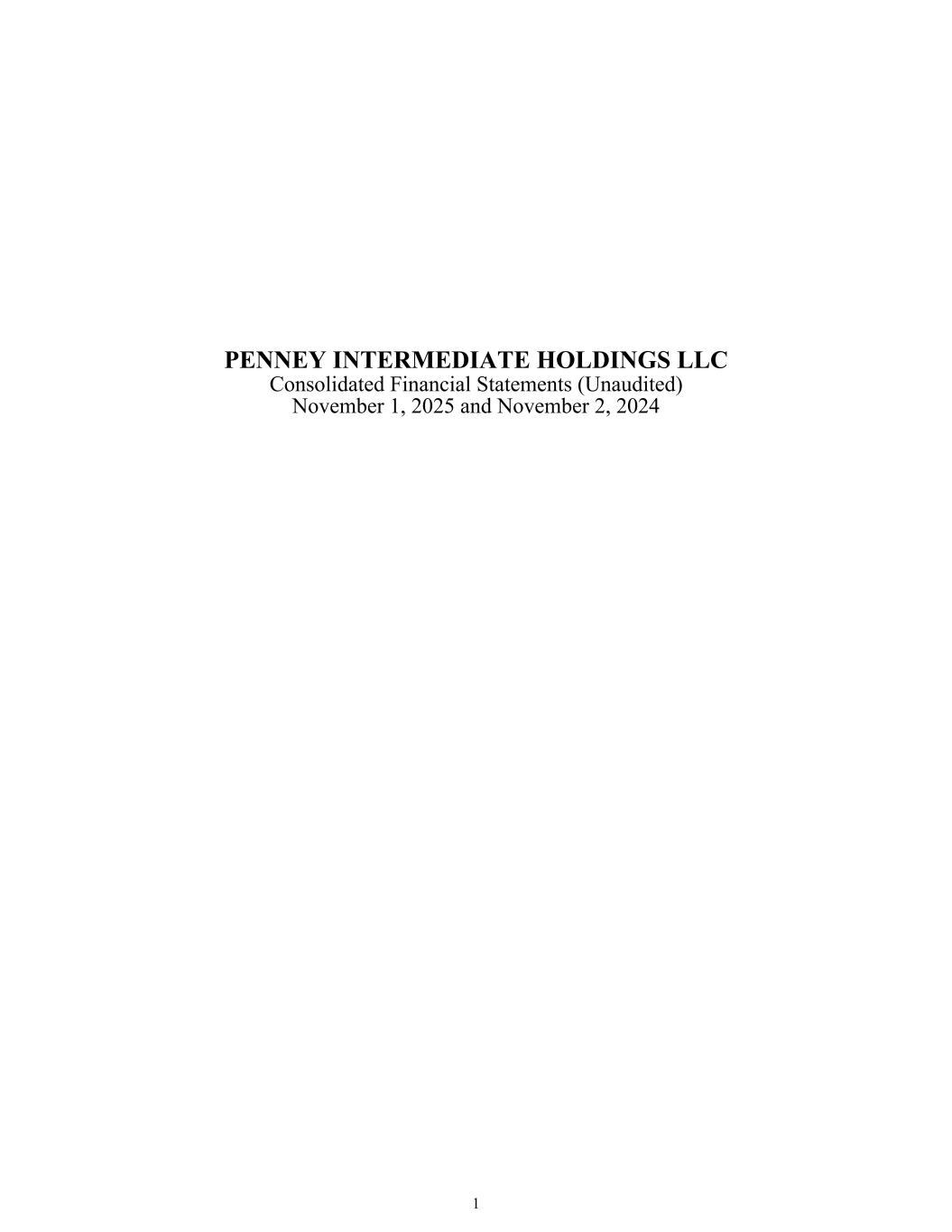 PENNEY INTERMEDIATE HOLDINGS LLC Consolidated Financial Statements (Unaudited) November 1, 2025 and November 2, 2024 Table of Contents Page Consolidated Statements of Comprehensive Income (Loss) 3 Consolidated Balance Sheets 5 Consolidated Statements of Member’s Equity 6 Consolidated Statements of Cash Flows 7 Notes to the Consolidated Financial Statements 8 2